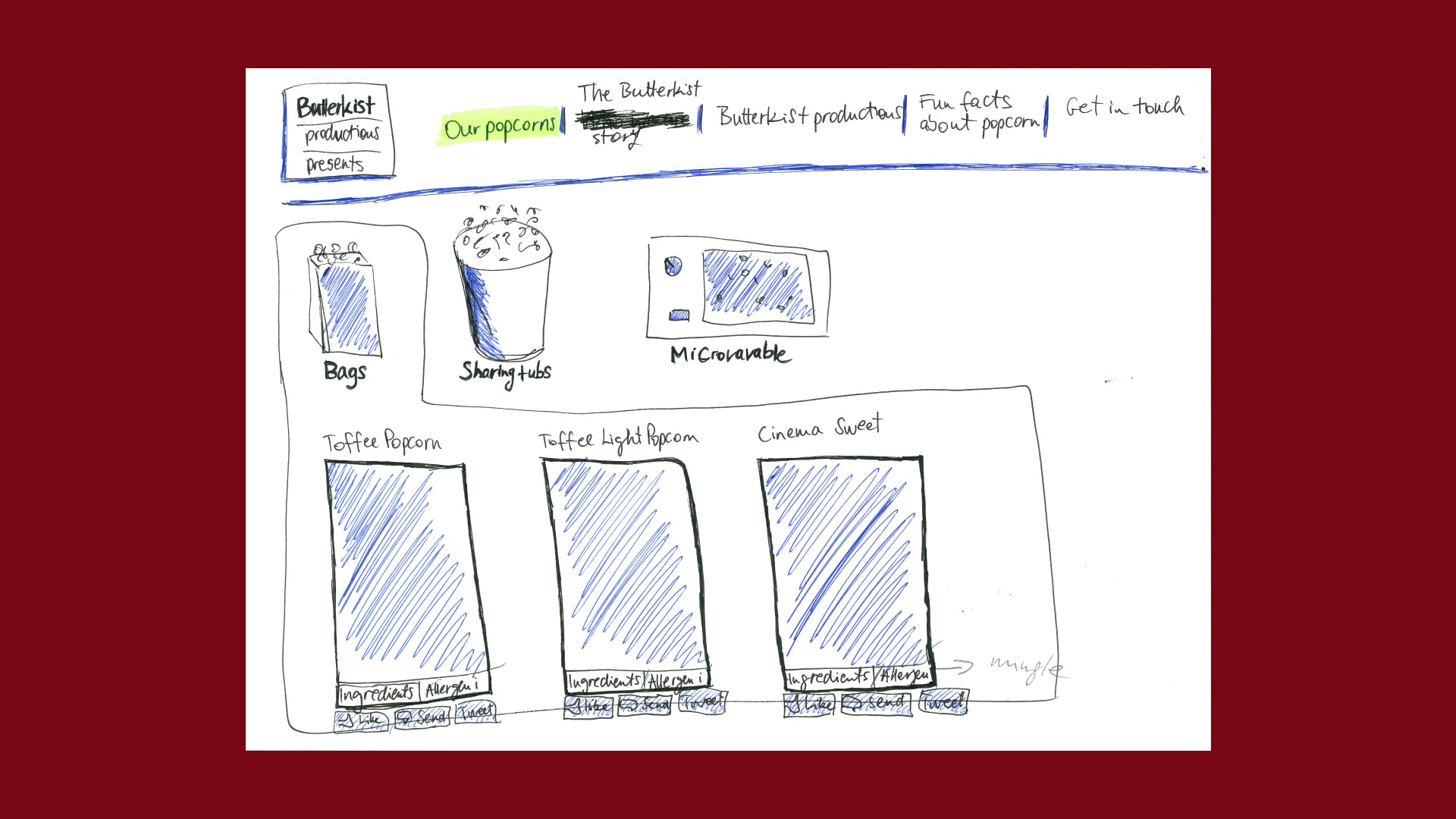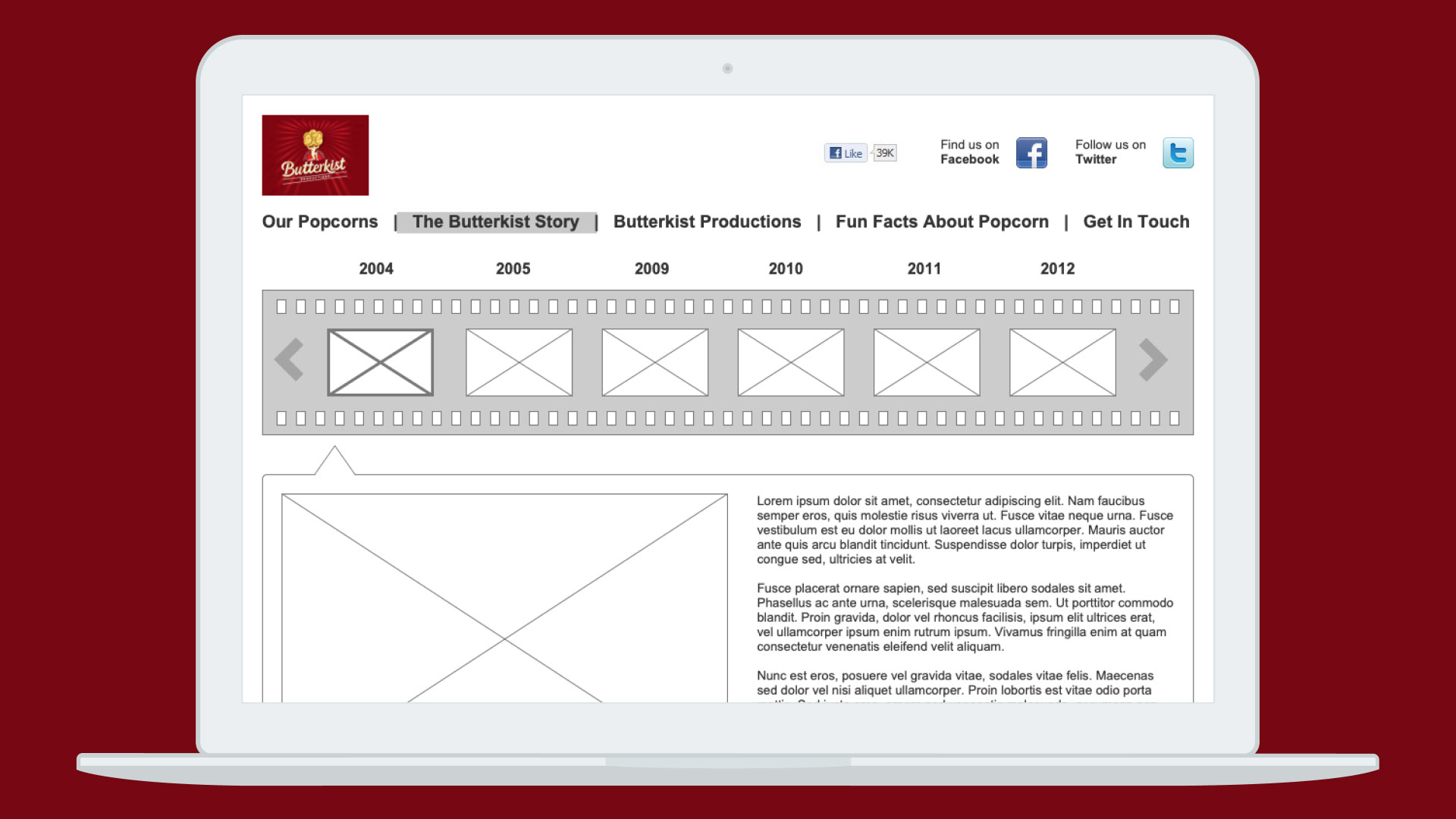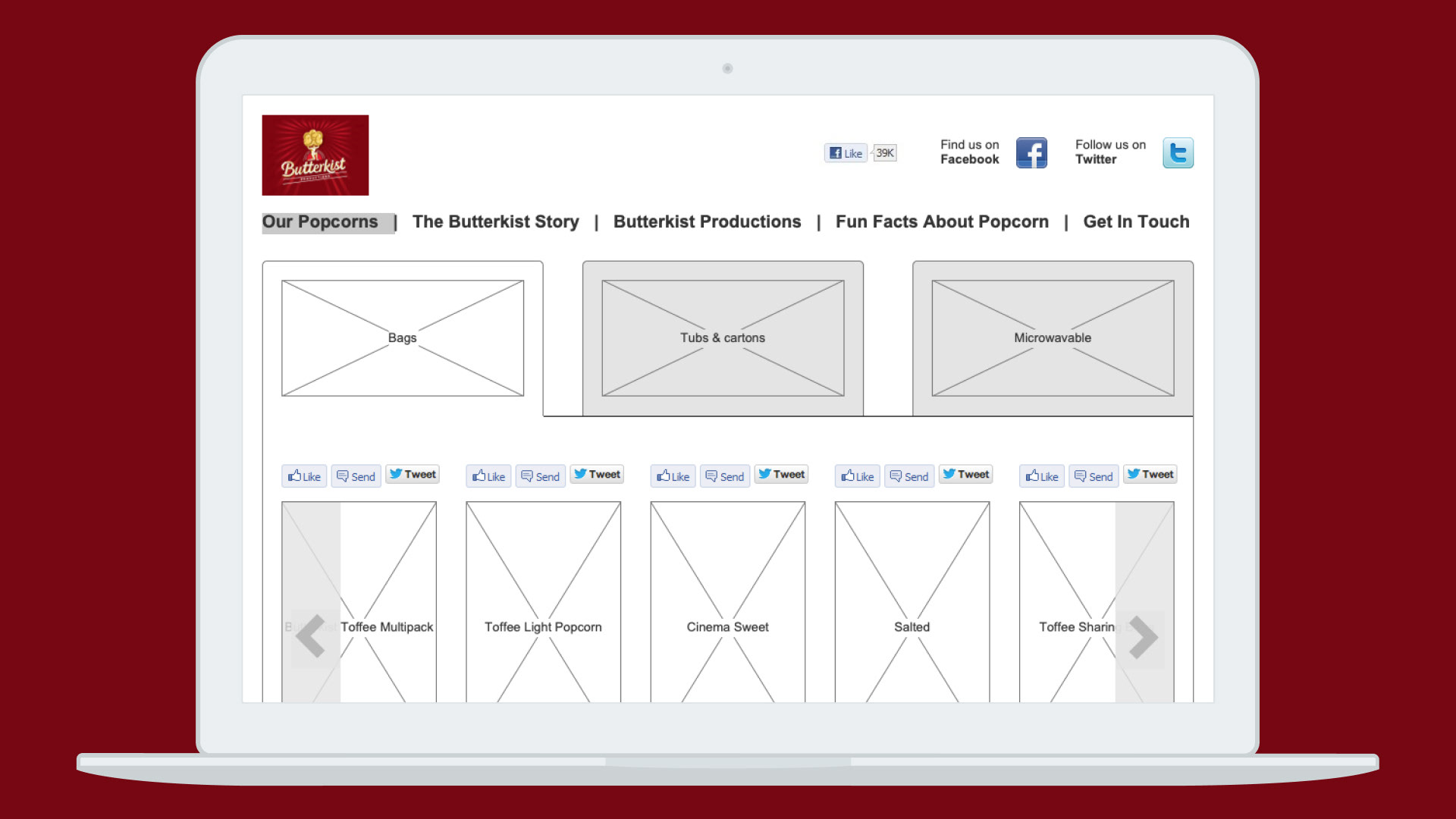 Butterkist was undergoing rebranding with a cinematic theme that they aimed to reflect in the website design.