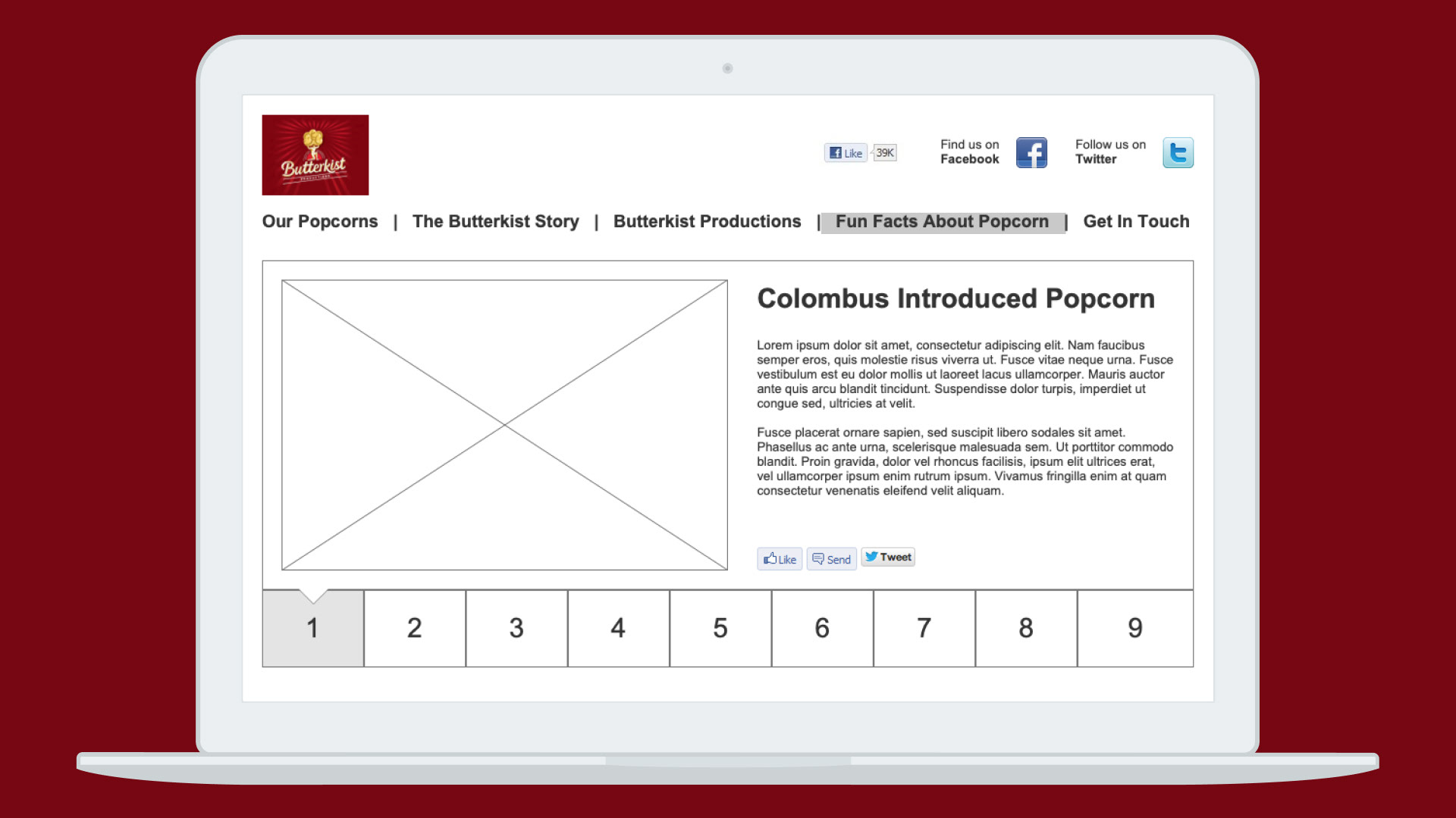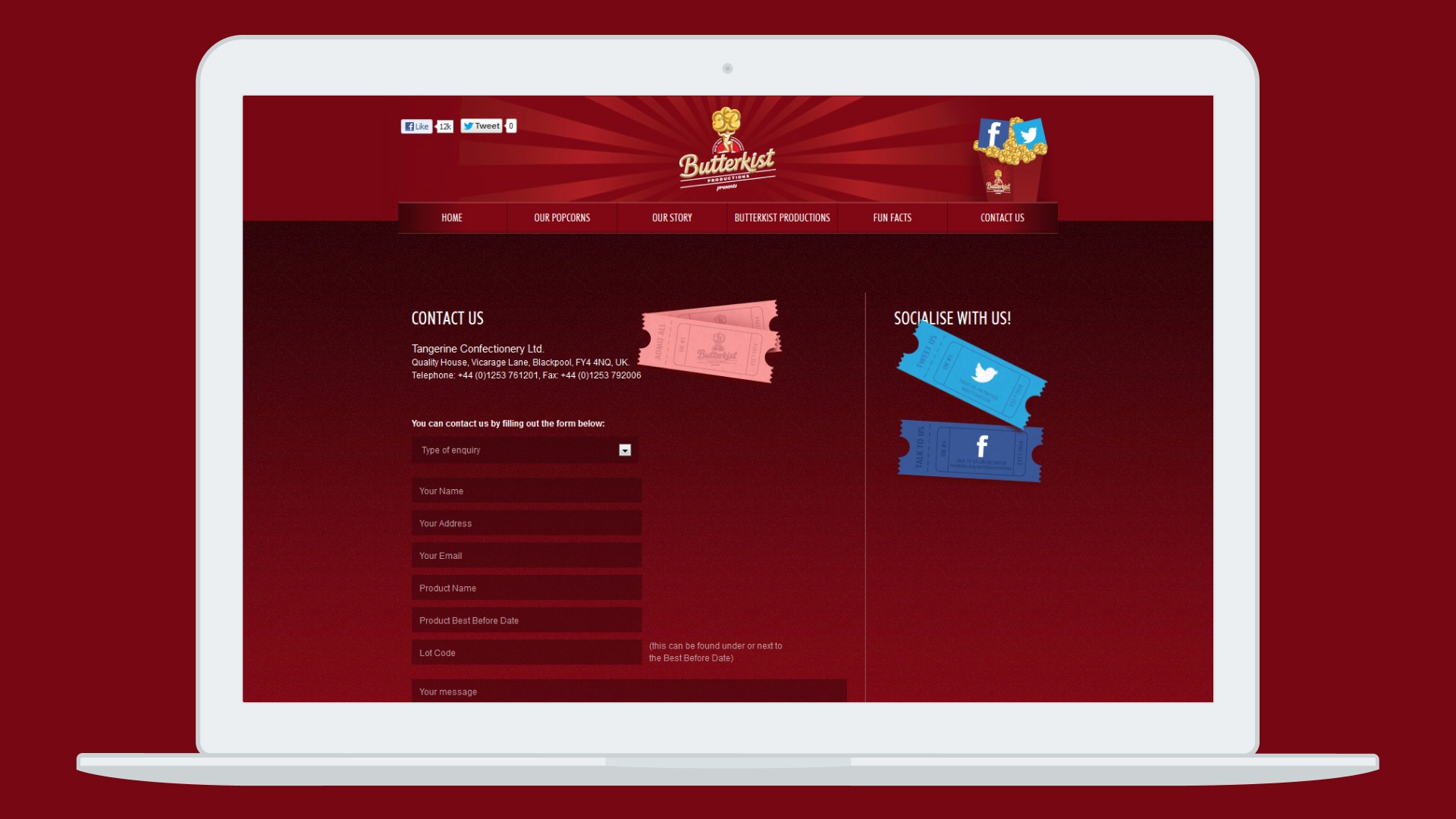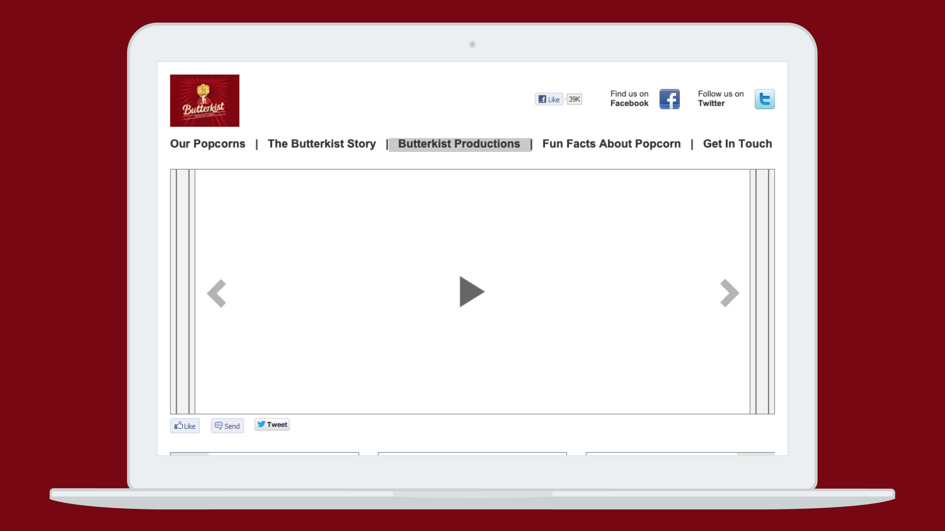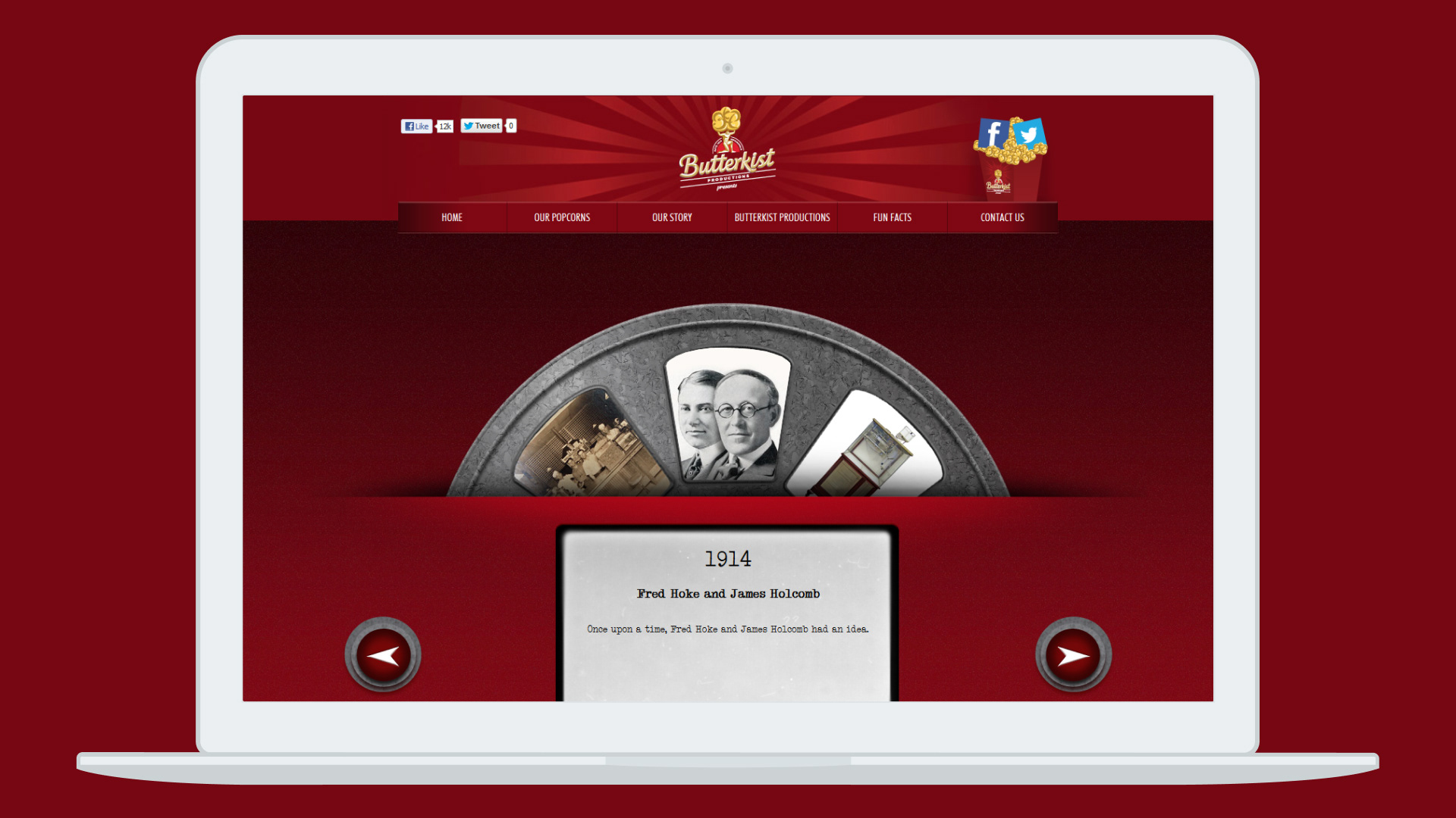 Butterkist was undergoing rebranding with a cinematic theme that they aimed to reflect in the website design.