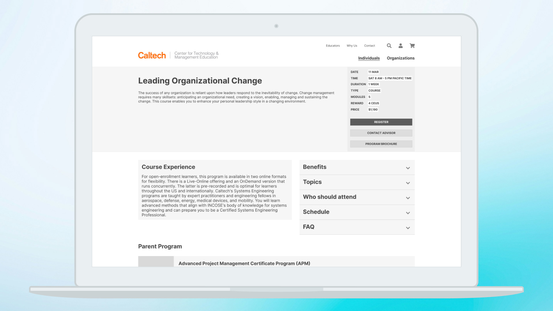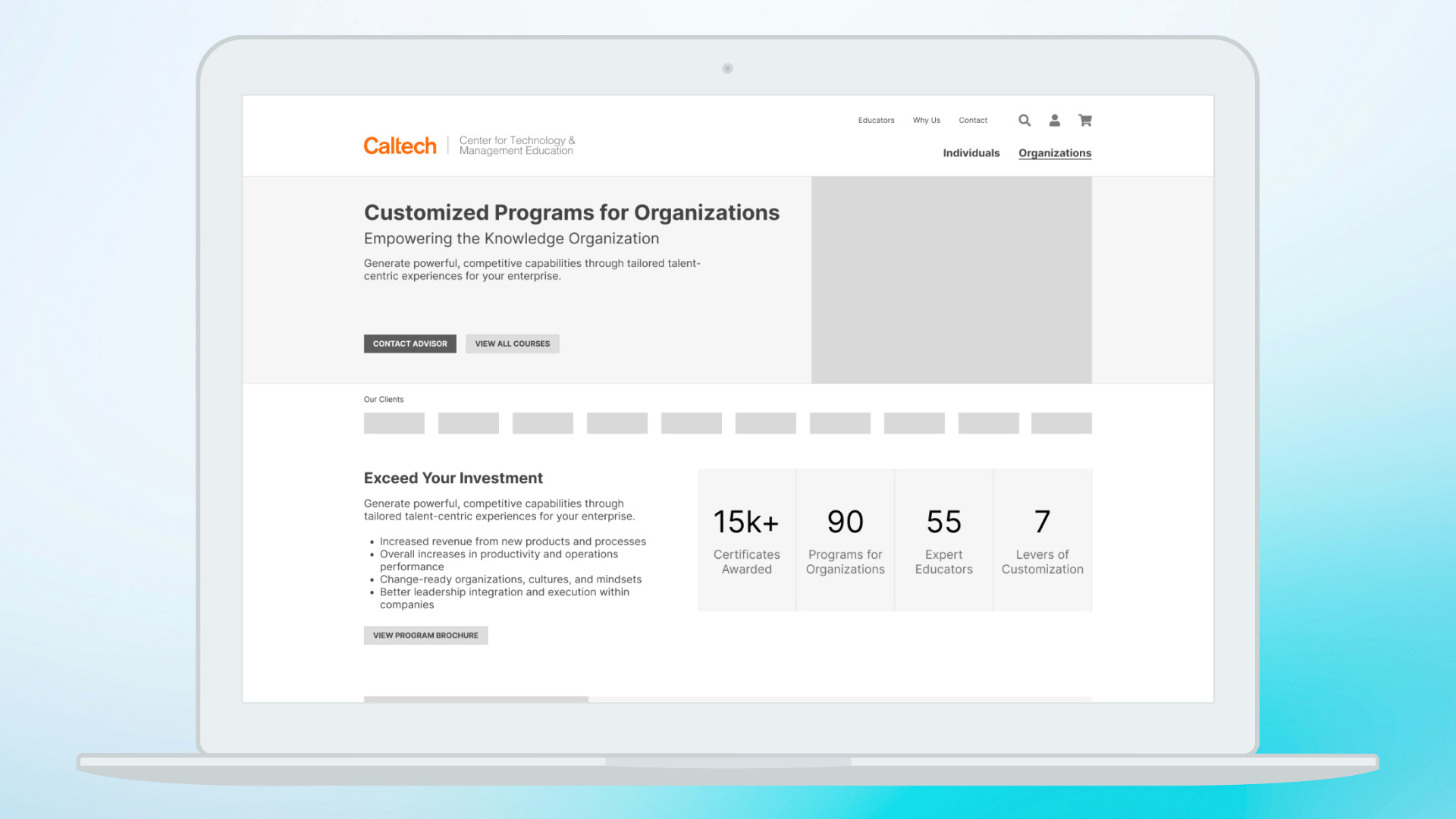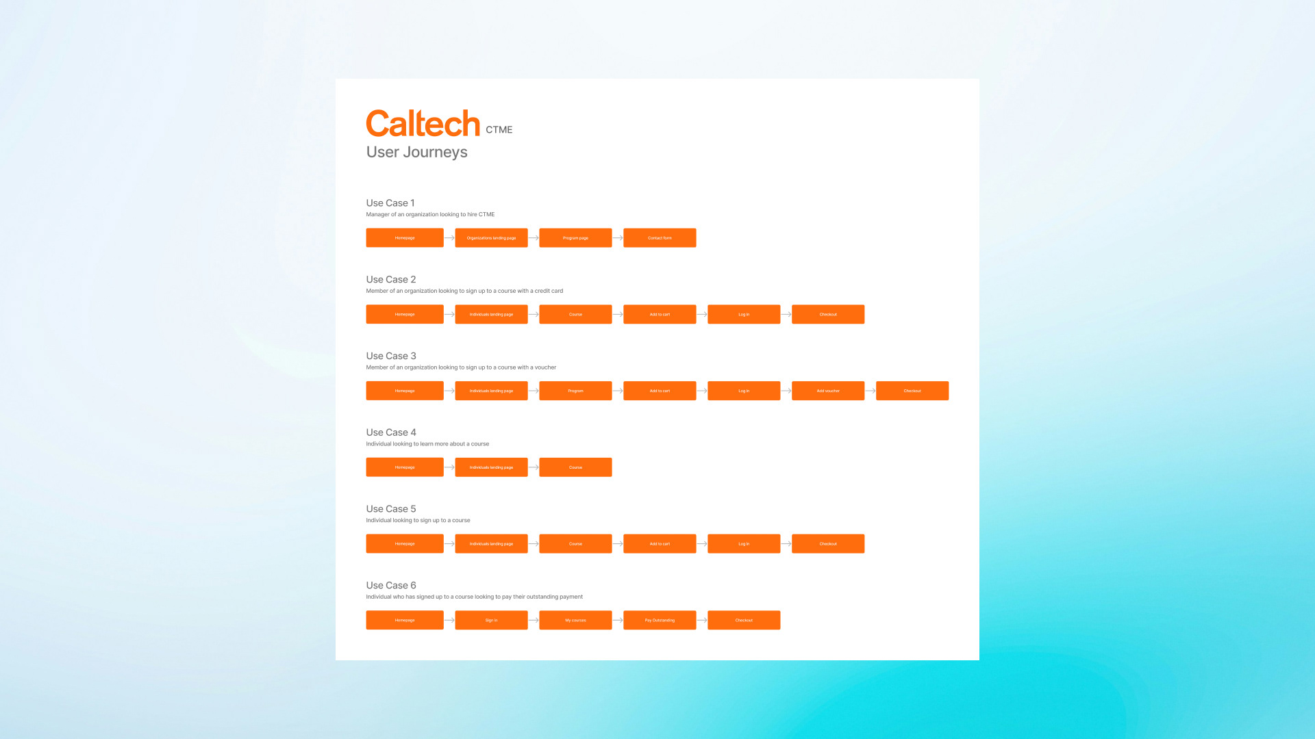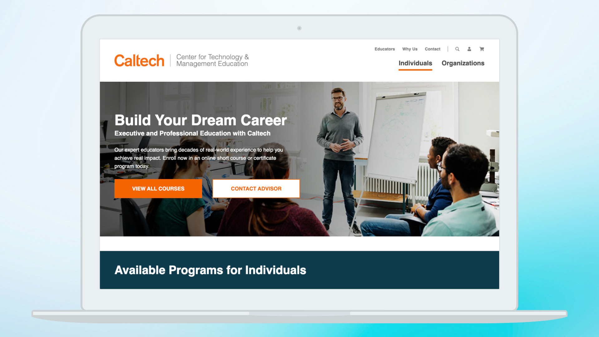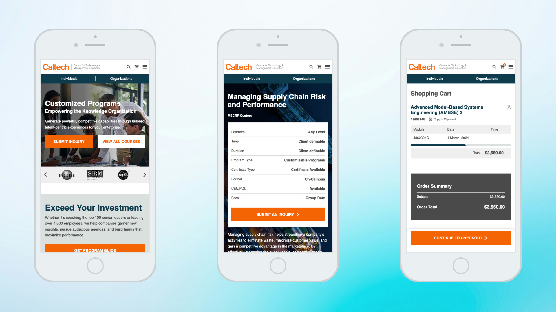 - $2.8M in revenue from site checkouts (individuals only; organizational sales occur outside the site and represent the larger part of the business). This transformation gave Caltech an unfair advantage, skyrocketing individual enrollments through UX/CRO.