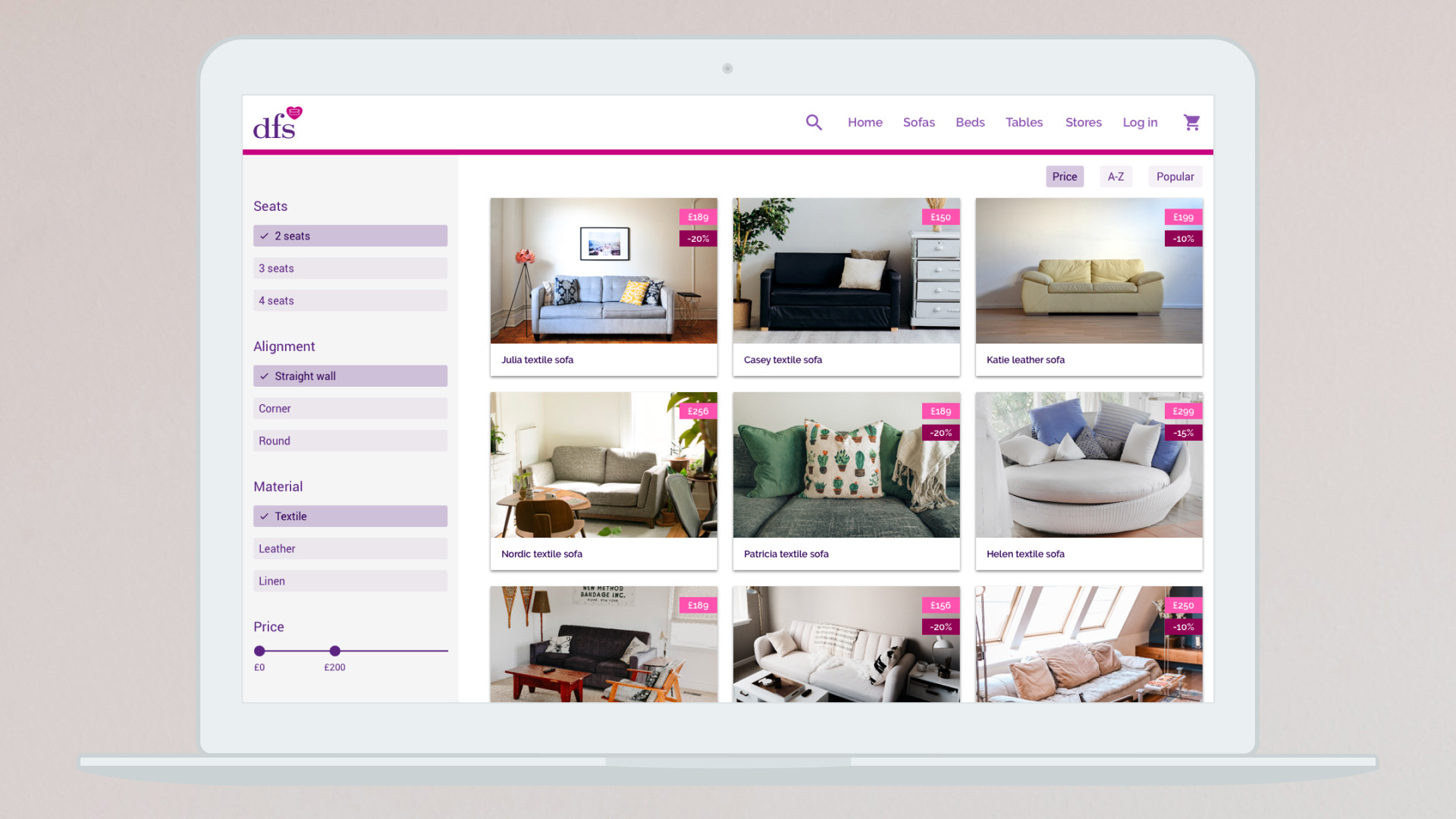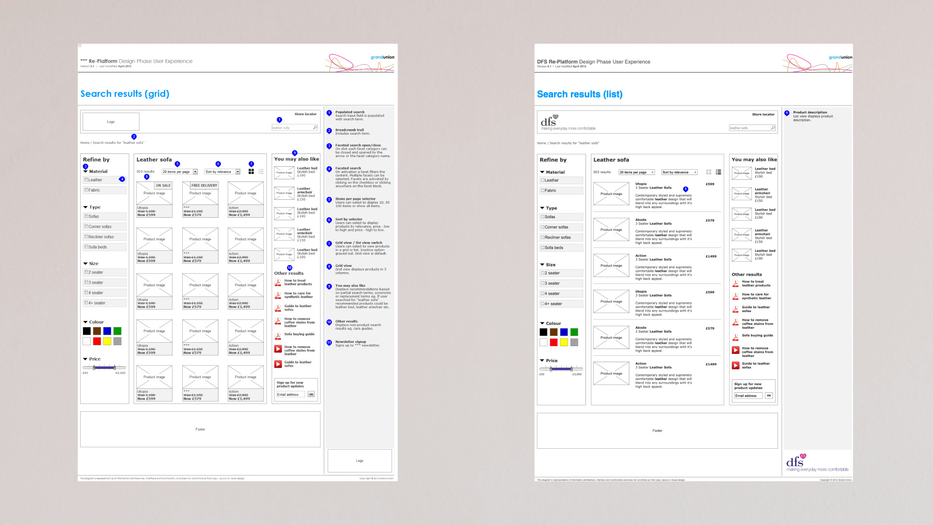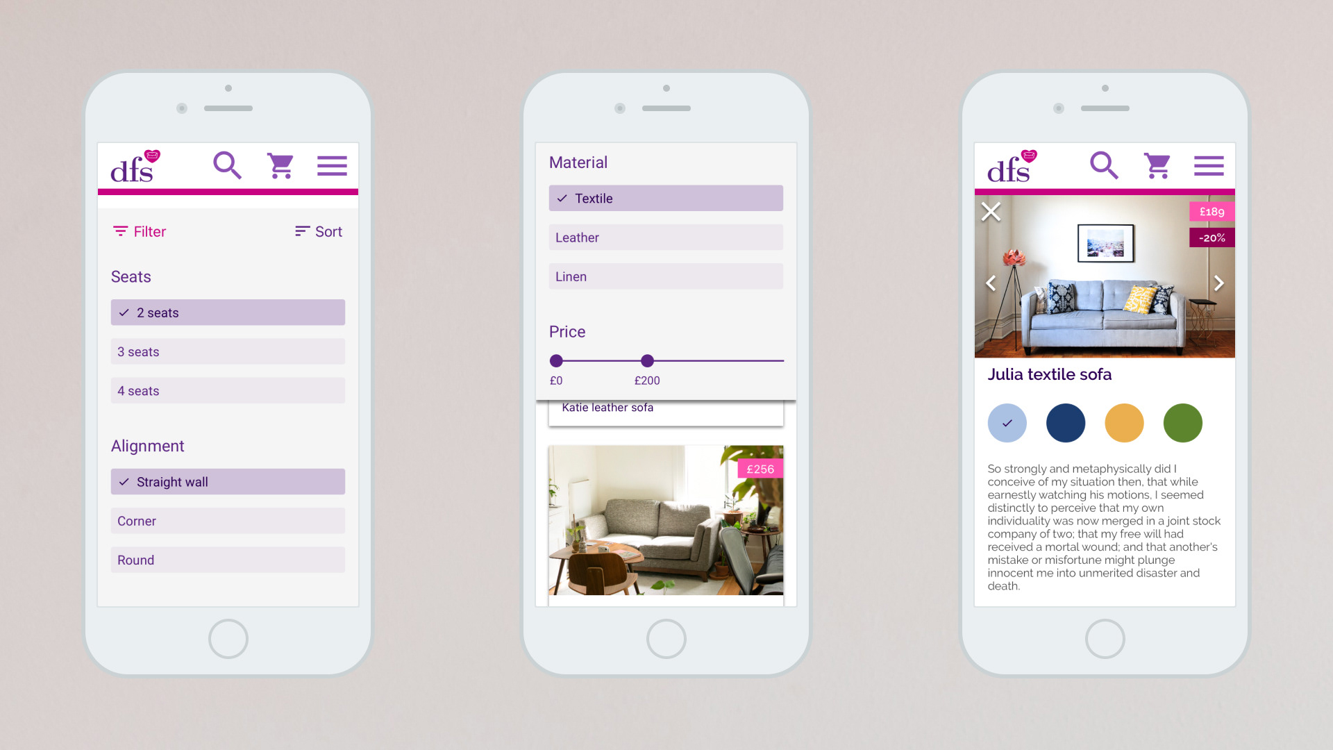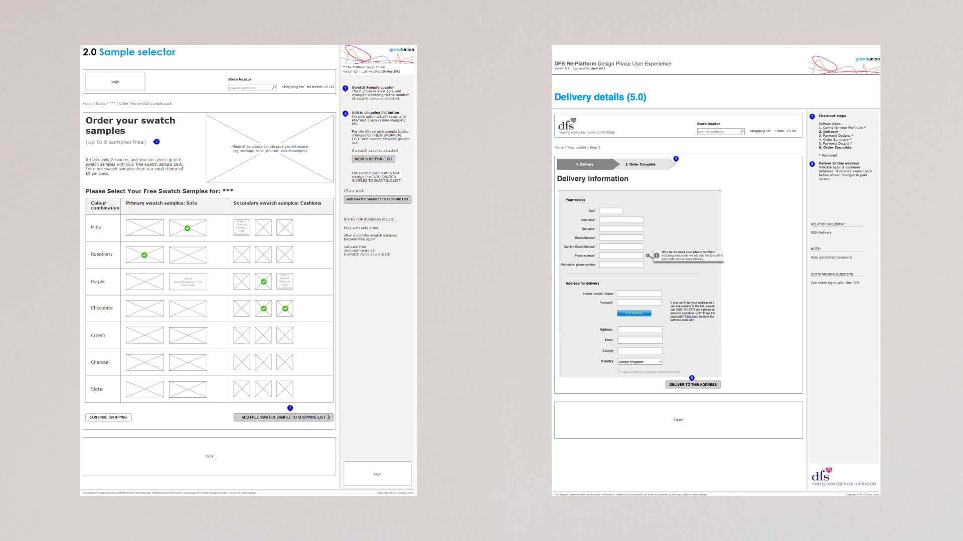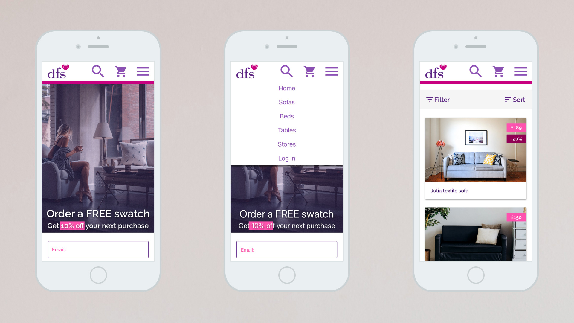 Bulky website → Conversion rate improvementDFS, a leading UK furniture retailer, experienced rapid expansion but their eCommerce platform struggled to keep pace. In particular, the complex variety of swatch samples made ordering difficult, which hindered sales growth.ChallengePlatform lag: The existing eCommerce site did not adequately support the growing business needs.Swatch complexity: A large range of swatch samples was hard for customers to browse and order.Goal: Simplify the ordering process to improve findability and overall sales conversion.SolutionUser Experience Design: Collaborated with Grand Union London to craft a seamless, responsive UX that streamlined product discovery and checkout.Information Architecture: Reorganized swatches into standardized, easy-to-navigate product categories.Educational Concept: Redesigned the User Interface as a concept project for a LEDU UI course to illustrate best practices.ResultsImproved conversion rates driven by enhanced UX and clearer