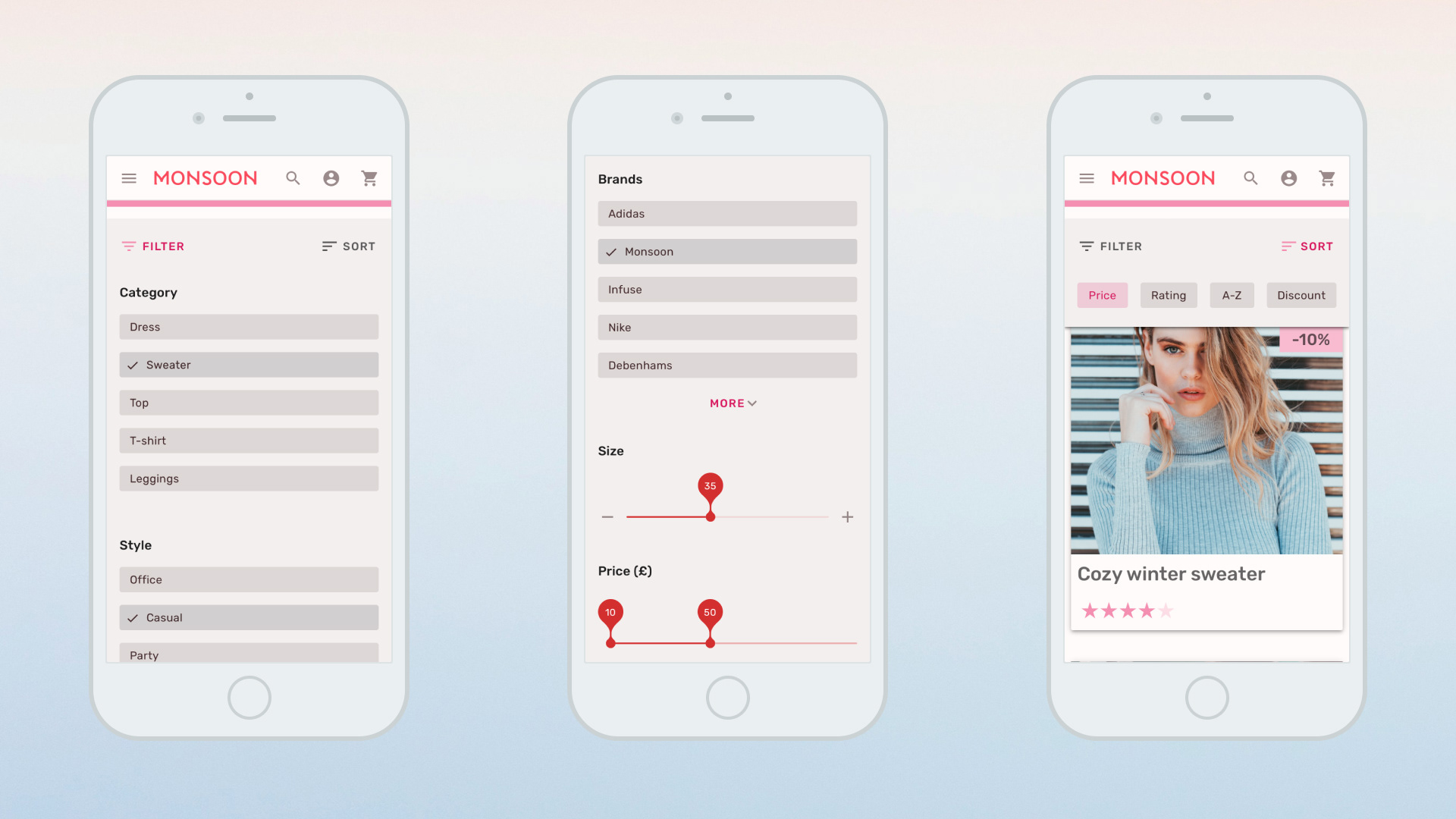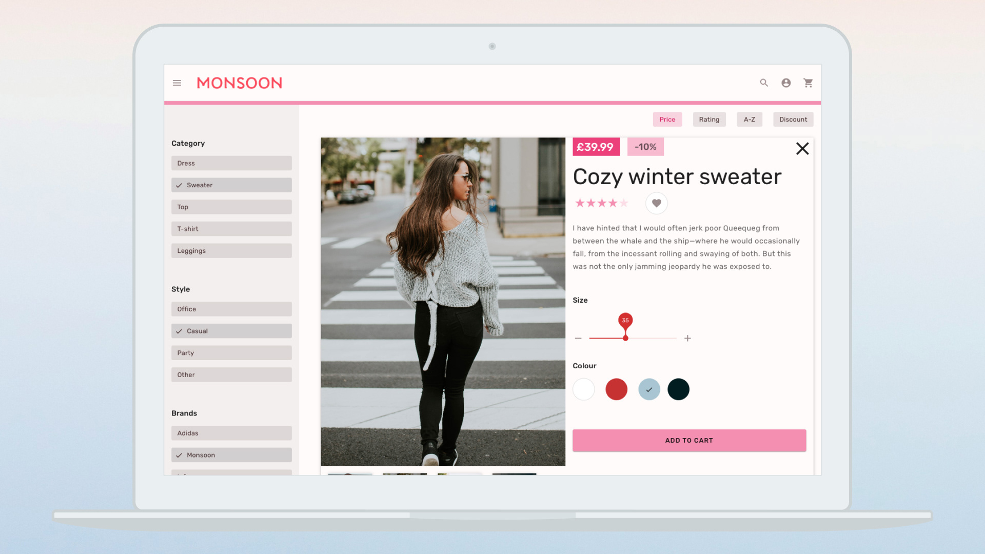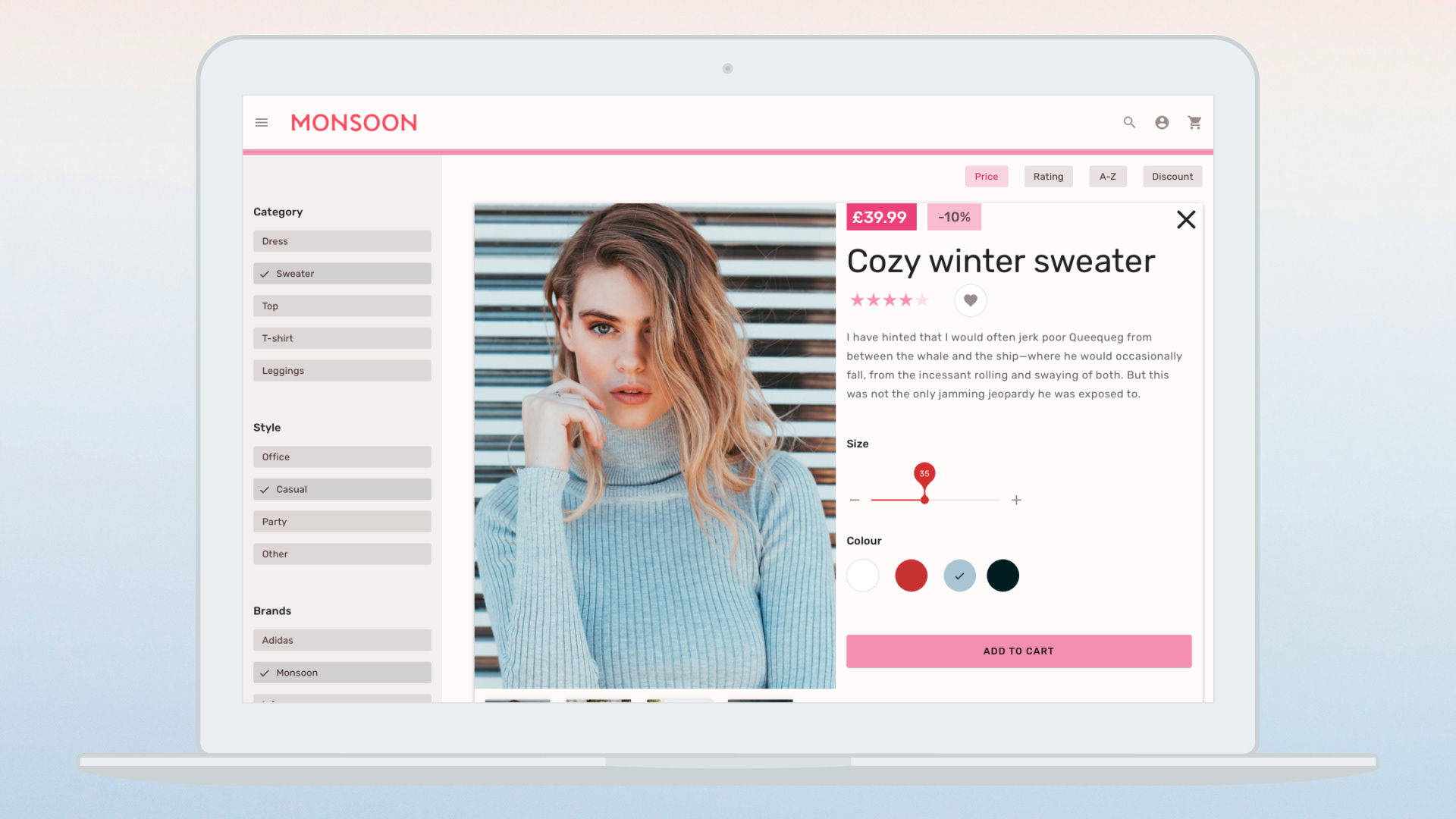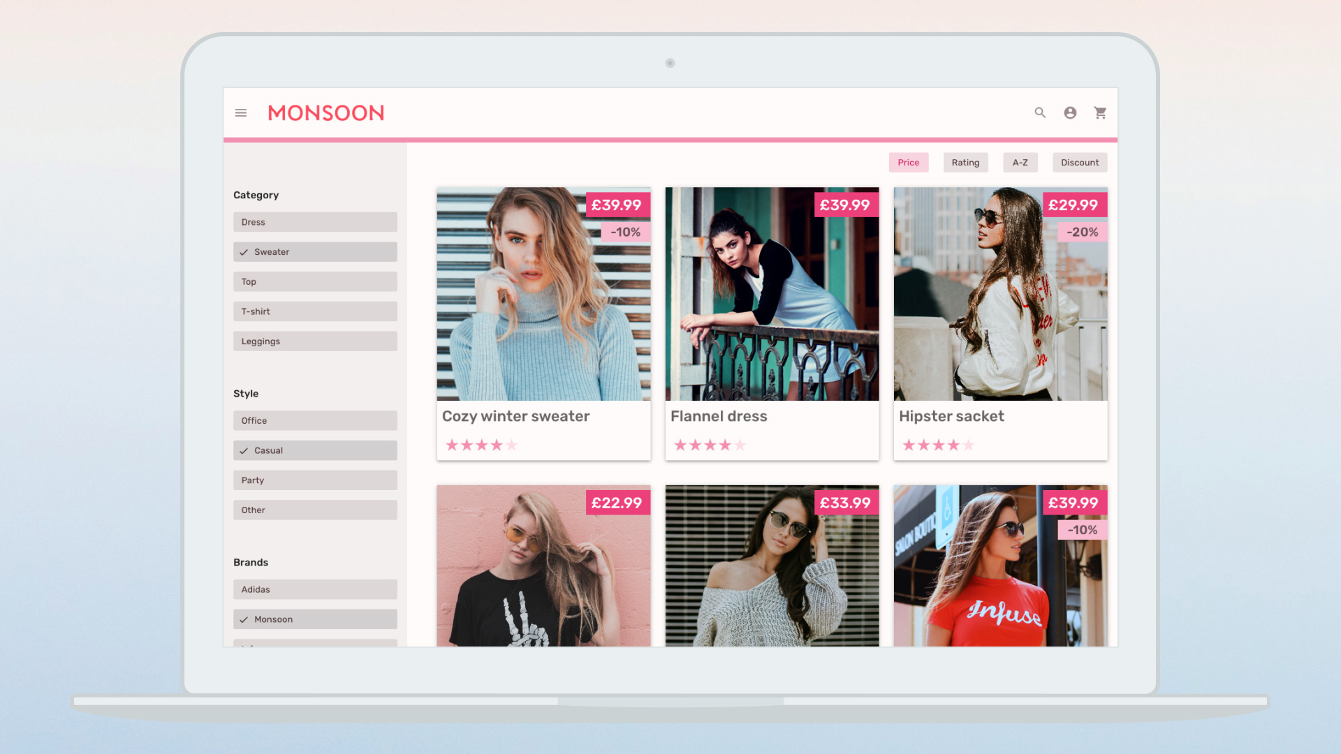 Monsoon, a fast-growing fashion retailer, faced significant challenges as its eCommerce platform struggled to keep up with rapid expansion and an ever-expanding variety of clothing options.ChallengeOutdated eCommerce platform lagged behind company growthExcessive product variety complicated the ordering process and impeded salesCustomers faced difficulty navigating and finding productsSolutionDesigned a seamless, responsive user experience to improve conversion ratesSimplified information infrastructure and reorganized navigation items for better findability and customer satisfactionConceptually redesigned the user interface to support a LEDU UI courseResultsEnhanced usability led to higher conversion rates and salesStreamlined navigation improved product discoverability and shopping satisfactionModern, responsive interface provided a more engaging and efficient online shopping experience