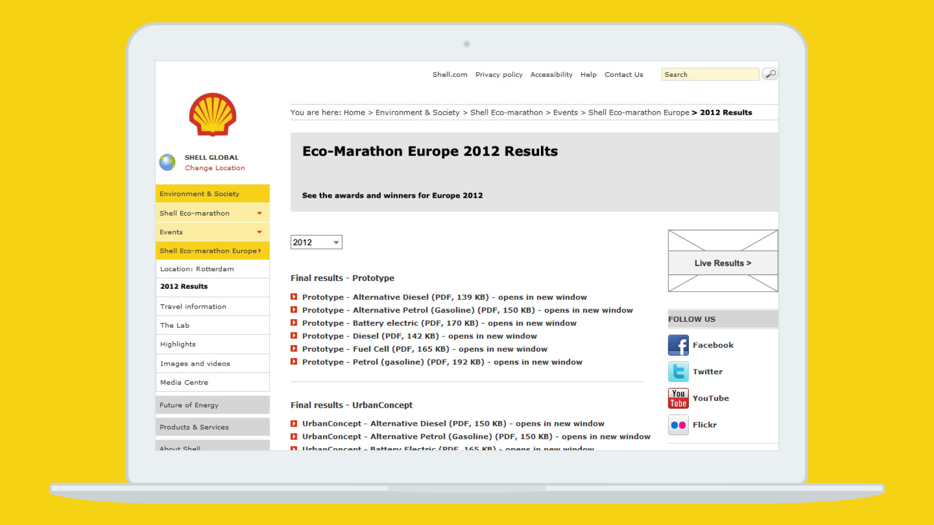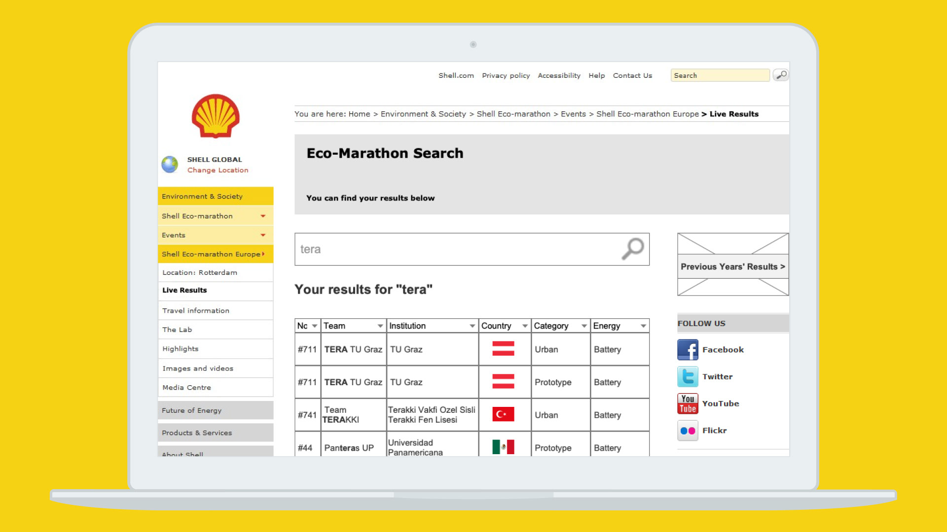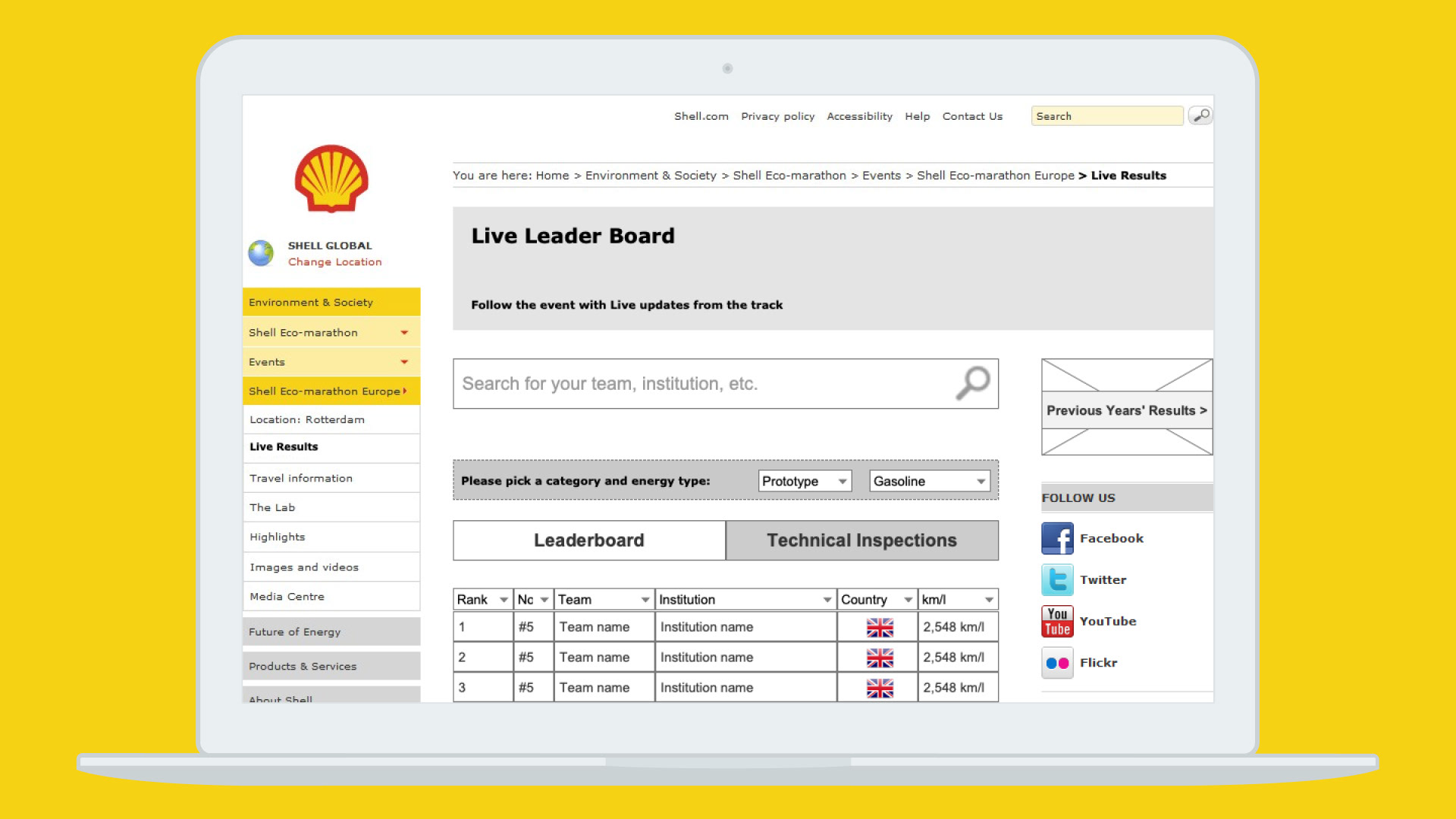 The Shell Eco Marathon required an integration of a leaderboard and live results feed into their existing website.
