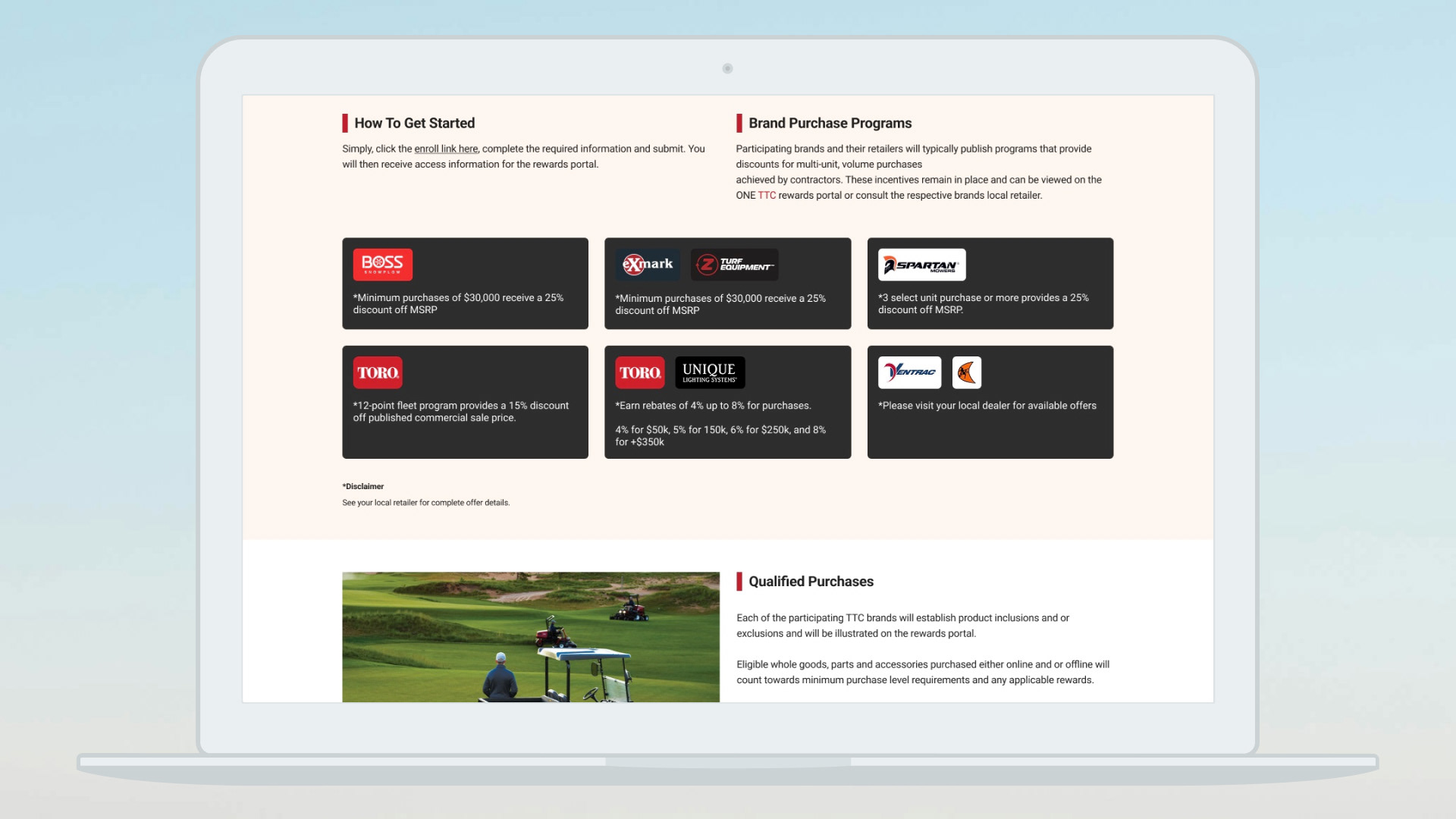 - Provided The Toro Company with a scalable platform for communicating future incentive programs.